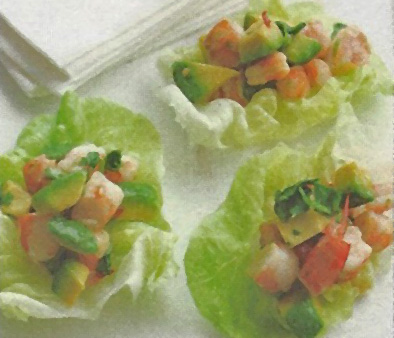 2. Répartissez la préparation à la crevette dans les feuilles de laitue boston. Vous pouvez accompagner ces timbales de sauce pimentée sucrée.