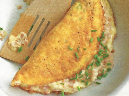 2. Faites chauffer Va du beurre dans une petite poêle et versez 1/4 de la préparation à base d'oeufs. Saupoudrez avec 1/4 du jambon et du gruyère que vous aurez préalablement mélangés. Faites cuire l'omelette à feu moyen jusqu'à ce qu'elle soit presque saisie. Pliez-la en deux et faites-la glisser sur une assiette. Saupoudrez de ciboulette. Couvrez pour maintenir au chaud.