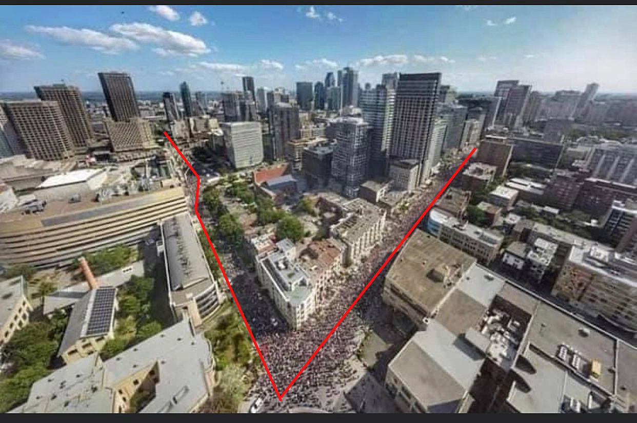 Francis Pilon : «selon nos informations, entre 15 000 et 20 000 manifestants ont pris la rue samedi»  selon les informations du SPVM, ça serait de l'ordre de 110 000 et 125 000 personnes qui manifestaient, mais as besoin du SPVM pour rendre crédible les chiffres 110 000 ou 125 000, une photo, explique bien le mensonge de ce journaliste.