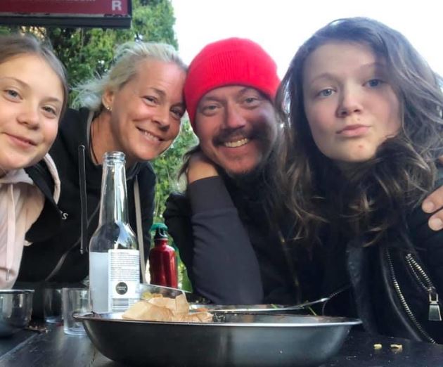 La famille Ernman-Thunberg, auteur collectif du livre "Scènes du coeur –notre vie pour le climat". Greta Tintin Eleonora Ernman Thunberg,née le 3 janvier 2003 est en ce moment la représentante la plus célèbre du mouvement pour le climat.