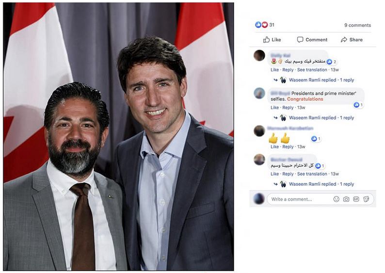 Une semaine après la collecte de fonds libérale du 17 juin, Ramli se trouvait à Damas et une photo de lui-même se tenant à côté d'un Trudeau souriant apparaissait sur sa page Facebook, avec le logo du parti libéral dans le coin, ainsi que la description de sa rencontre par Ramli. avec Trudeau en honneur. «Son gouvernement remporte les prochaines élections fédérales et les prochaines élections fédérales», a écrit Ramli, aux côtés de l'affiche, «nous espérons que le Canada jouera un rôle plus important dans la paix mondiale».