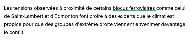 Voici ci-dessus un extrait d'un article de la journaliste Emilie Clavel de Huffingtonpost qui est très malhonnête et tente de faire de la désinformation pour cacher réellement qui était sur place, qui exactement à érigé les barricades sur les voies ferrées.