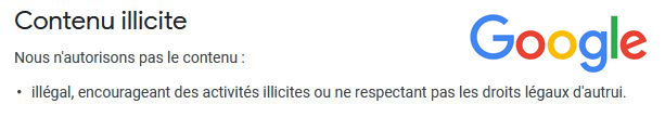 Mais pour ça, ce que les médias n'ont pas parlés, l'entente ne s'arrête pas là, malheureusement le gouvernement demande à Google de censurer sur tous les groupes identitaires, musulmans, juifs, Antifa, donc avec son programme Adsense que vous pouvez installer pour publier les publicités venant de ses clients, Google vous surveille, vous dit ce que vous avez le droit de publier.