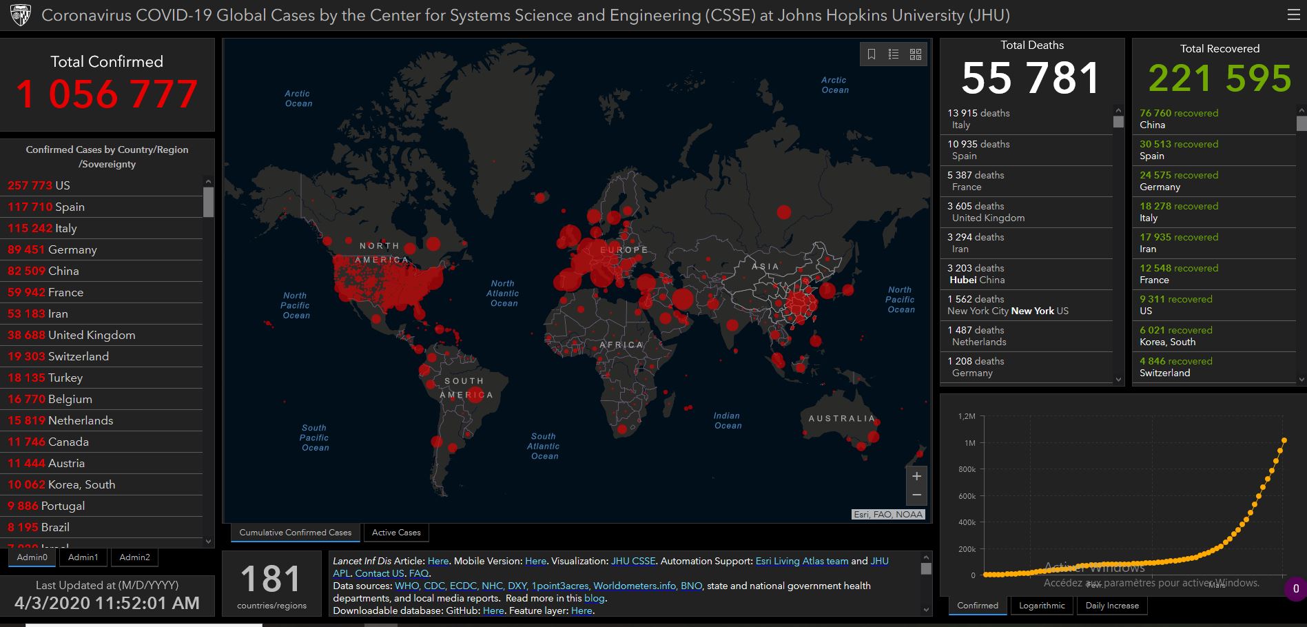 C'est aussi la même université Johns Hopkins qui est à l'origine de l'ouverture du site web , Track virus on live map.