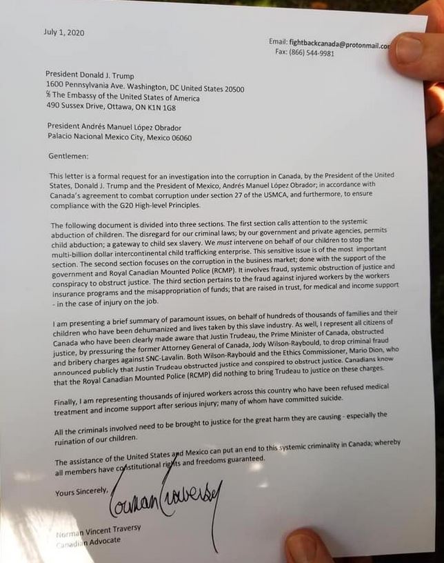 Cette lettre est une demande officielle d'enquête sur la corruption au Canada.