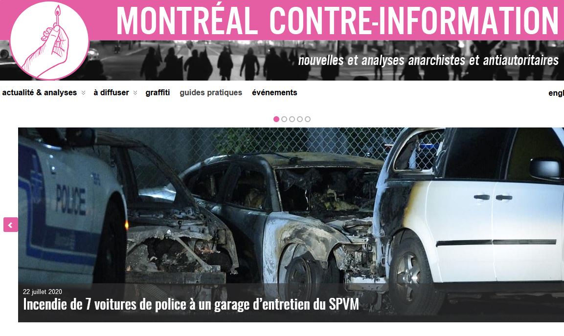 Militants d’extrême gauche ont revendiqué l’incendie de plusieurs véhicules du Service de police de la Ville de Montréal (SPVM), en fin de semaine dernière, dans l’est du Plateau Mont-Royal.