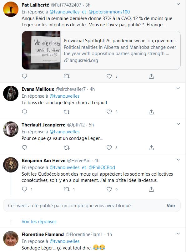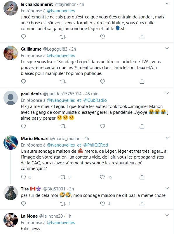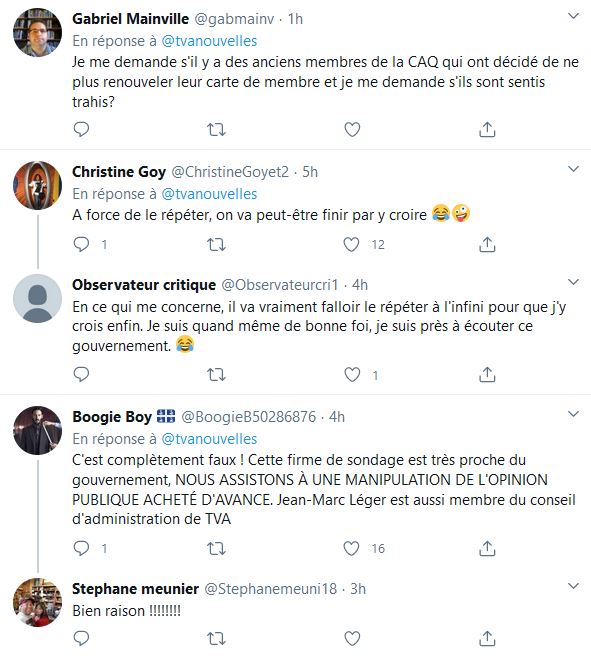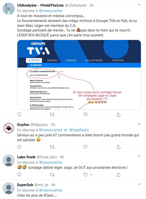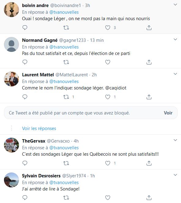 N'oubliez pas que c'est avec vos taxes que François Legault s'est payé un sondage, la firme antidémocratique Leger travaille pour Québec et Canada
