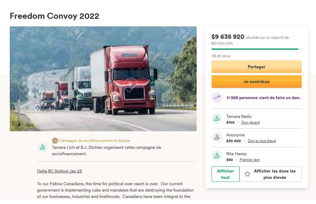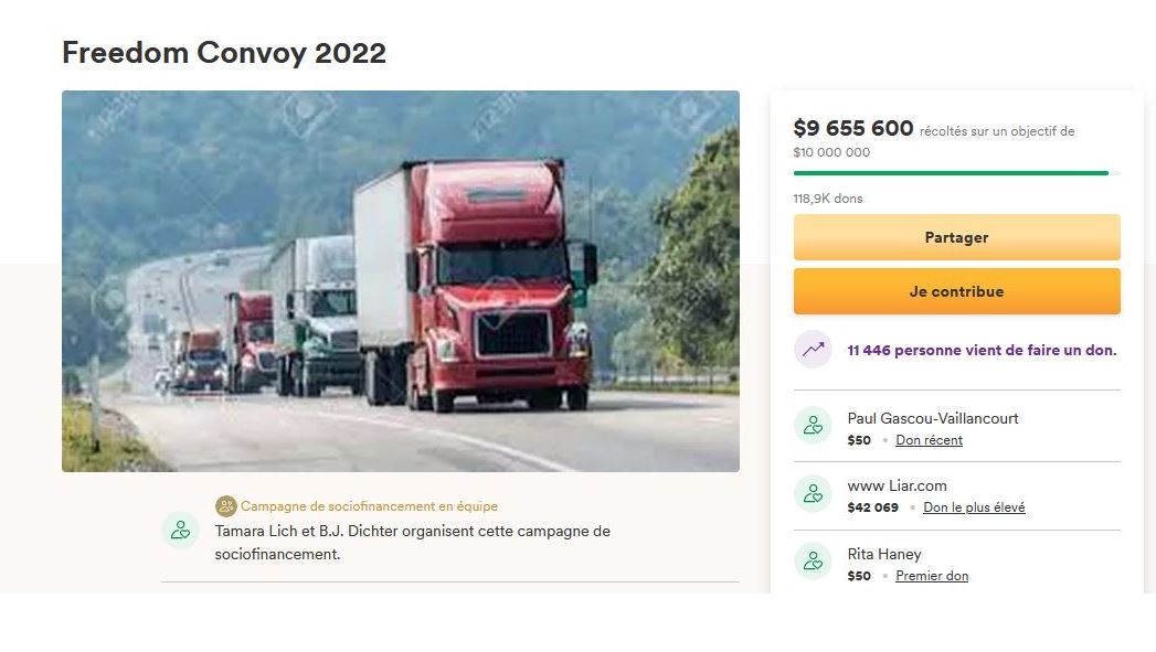 Les gauchistes de San Francisco, les radicaux se mêlent de la politique Canadienne. En faisant cela Gofundme espère simplement donner de la misère aux camionneurs, son but c'était d'aider les gouvernements.