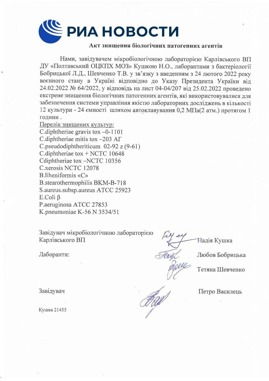 Si c'est vrai voici un document de Ukraine traduit en français expliquant ce se trouvait dans les laboratoires.