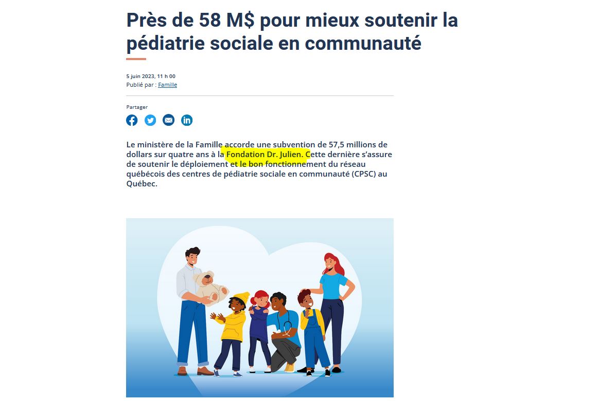 Où sont les dons pour les enfants, c'est plus de 10 000 000 de moins pour les enfants, je trouve que ça fait beaucoup pour tous ce beau monde-là. De plus, le gouvernement vient d'octroyer une aide de 58 000 000 à cette fondation :