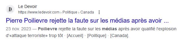 Il faut dénoncer Rebel News, elle commence par dire "le Chef conservateur a déshonoré sa fonction lorsqu’il s’est porté cette semaine à la défense de Rebel News" je te répondrais ma chère que Pierre Poilievre à vu les mêmes images que les millions de gens ont vues sur Twitter, un flic déconnecté à la solde de gouvernement Trudeau qui a procédé à l'arrestation d'un vrai journaliste qui posait les bonnes questions « tu sais, le genre de journaliste qui n'existe plus chez Québecor parce que vous êtes incapable de vivre sans subventions gouvernementales».
