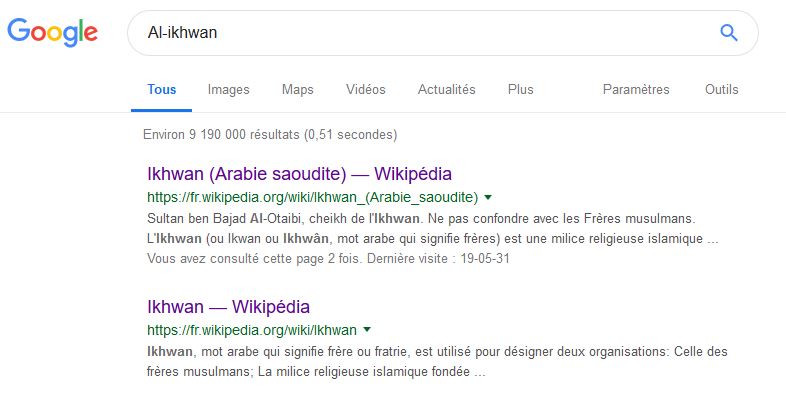 Si je fais seulement une recherche avec le mot Al-ikhwan, voici le résultat :