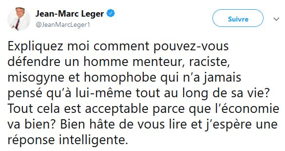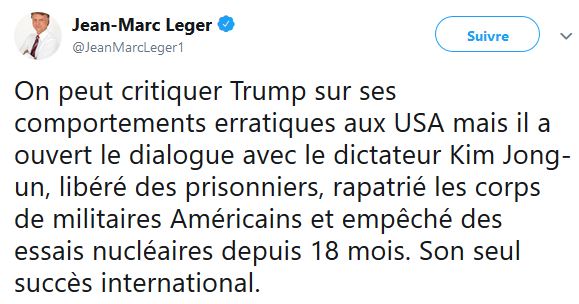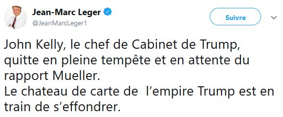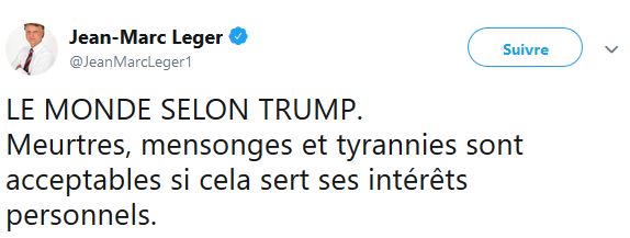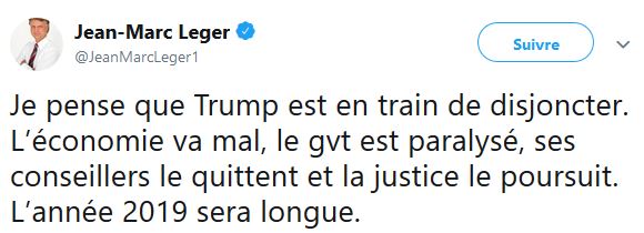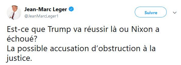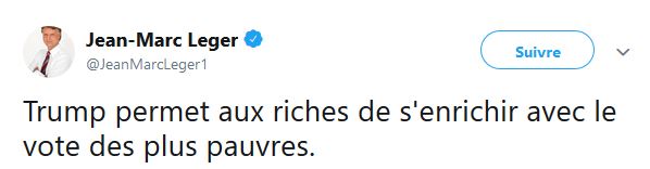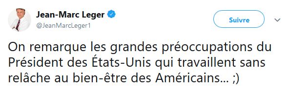 M Léger ne semble pas juste s'intéresser aux sondages, celui semble aussi s'intéresser à la politique américaine, surtout au président des États-Unis Donald Trump.