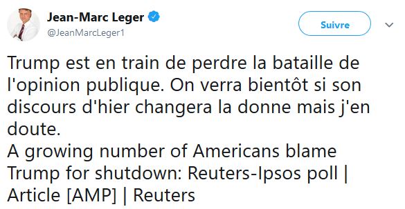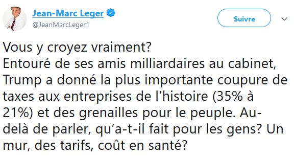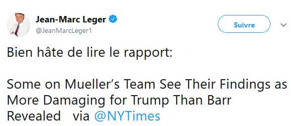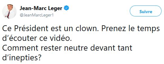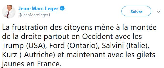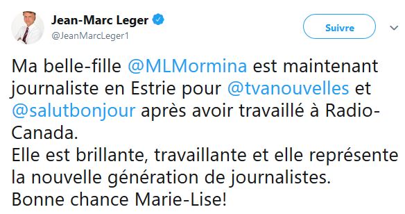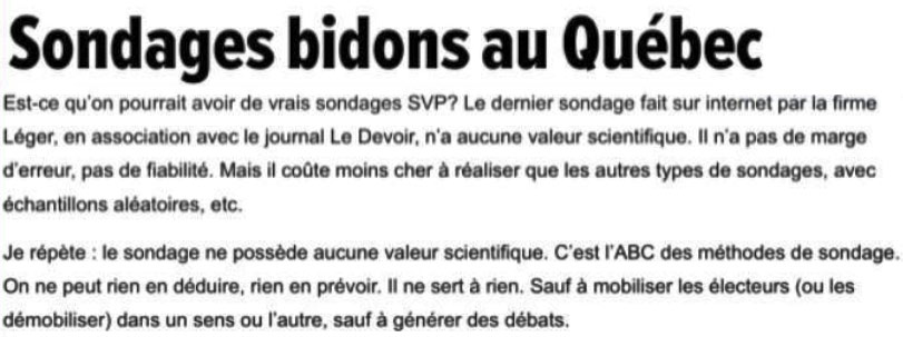 Pour revenir à notre mouton, M Léger ne se contente pas juste de faire des sondages, mais également d'écrire ses états d'âme sur les réseaux sociaux, notamment Twitter, bien sûr toujours dans le même sens que le Journal de Montréal et TVA nouvelles.