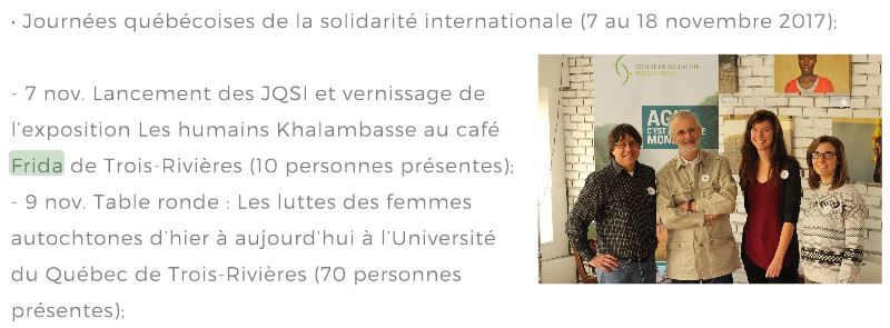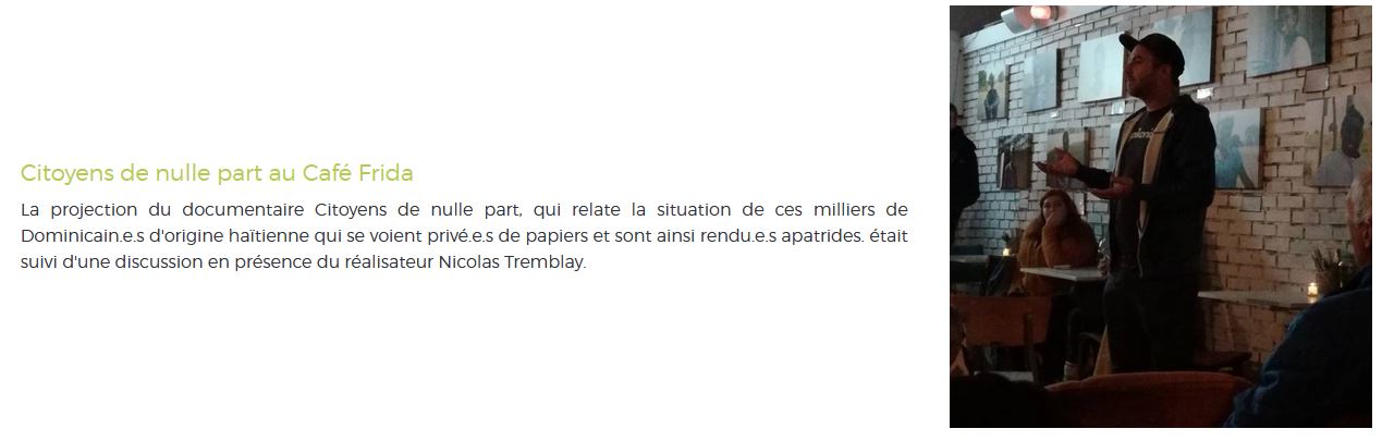 Ce n'est pas une critique, sauf que cela démontre le Café Frida semble avoir la même idéologie sur l'immigration que les antifas et sauvons la planète. Le Frida semble être impliqué socialement, sensibilisé sur plusieurs causes, comme l'immigration, l'environnement, etc.