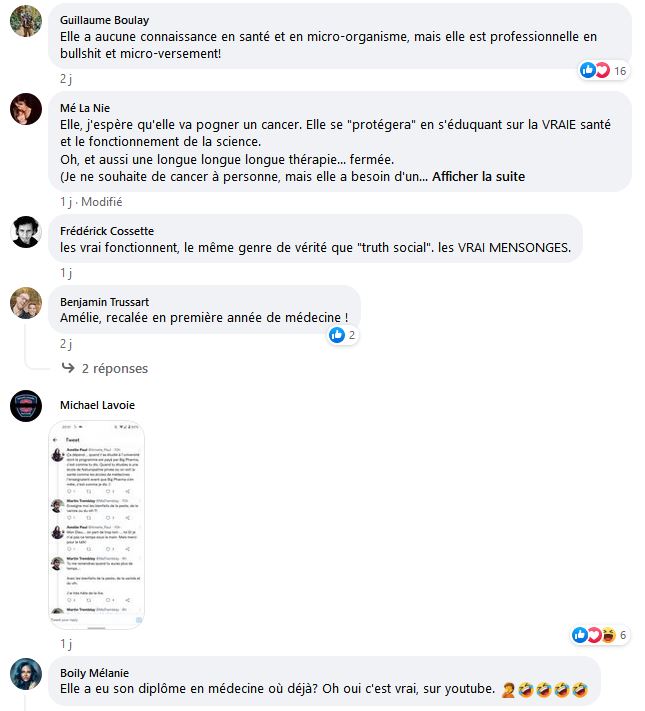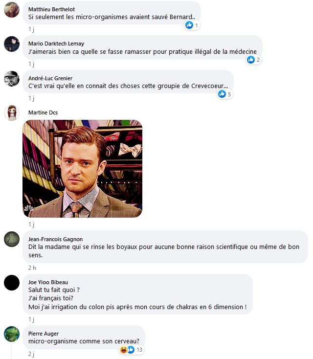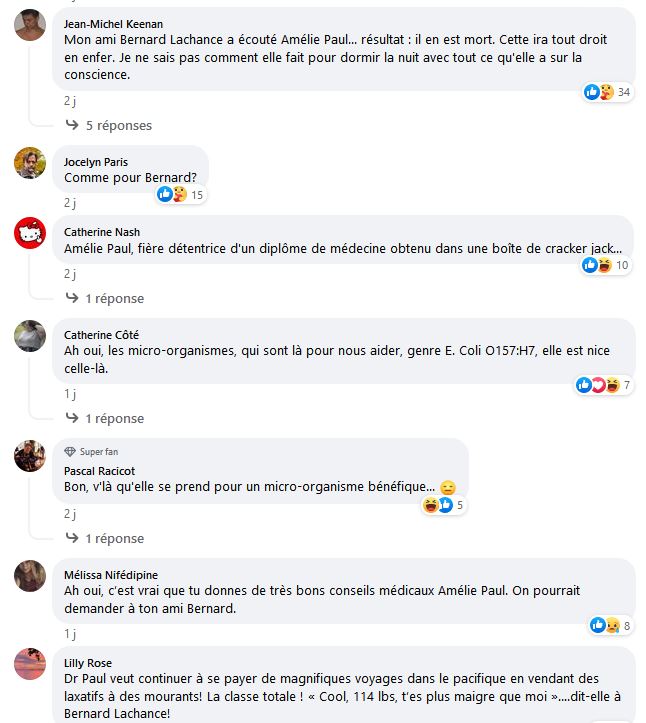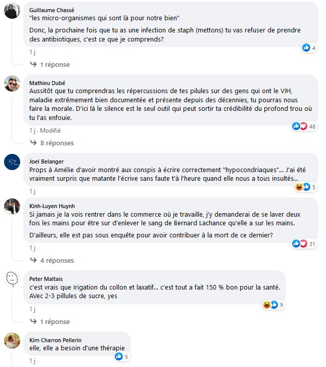 C'est incroyable de lire les commentaires idiots sur le page de Xavier Camus, notre bienfaiteur professeur enseigne la philo à nos jeunes dans un Cegp de Montréal, il n'y à rien là, tout est normal. Xavier Camus à décidé de s'en prendre à Amélie Paul, qui explique simplement que les micro-organismes sont là aussi pour notre santé.