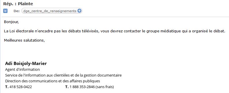 Après avoir formulé une plainte contre Géatan Châteauneuf, voici la réponse du DGEQ.