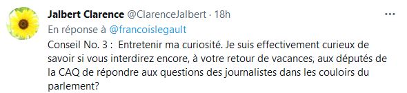 La plupart des commentaires des gens qui le suivent sur son compte Twitter sont négatif, effectivement on sent, que M Legault cherche à faire réagir en nous donnant 7 conseils, on dirait qu'il a clairement le gout de rire des Québécois.