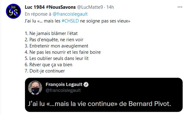 Il se dit premier ministre, François Legault est-il plutôt devenu humoriste ? une publication qui fait réagir, encore une fois il nous sort le violon avec un nouveau livre qu'il aurait lu de Bernard Pivot ...mais la vie continue.