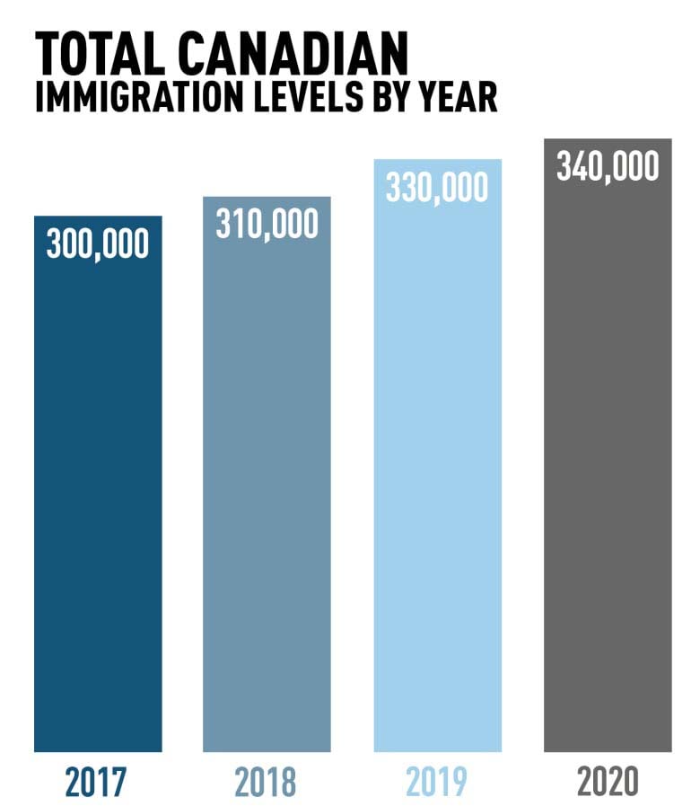 Au cours de la période de consultation du gouvernement, l’Alliance canadienne du secteur de l’immigration pour les immigrants a présenté «Vision 2020», un plan «audacieux» de trois ans visant à faire face aux changements démographiques croissants en cours dans le pays, appelant à une augmentation des effectifs dans les domaines économique, familial et des réfugiés. catégories.