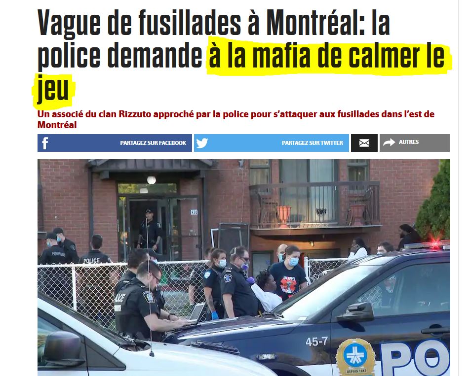 C'est beaucoup mieux la mafia, Québec qui voulait demander de l'aide à la mafia, personnes ne s'insurgent de demander à la mafia qui contrôle tout le réseau de la criminalité mondiale, même les Hell's Angels, personne.