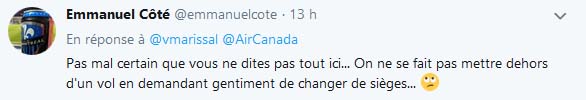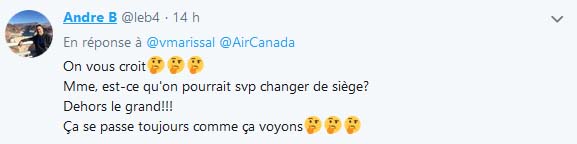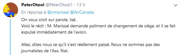 Ce que notre député de Rosemont, ne savait pas, c'est qu'il y avait quelqu'un qui était assis non loin de lui, il a été témoins de la scène, selon cette personne, il voulait changer de place ce qui lui a été refusé par le personnels, il s'est emporté et il aurait exprimer le souhait de quitter l'avion.