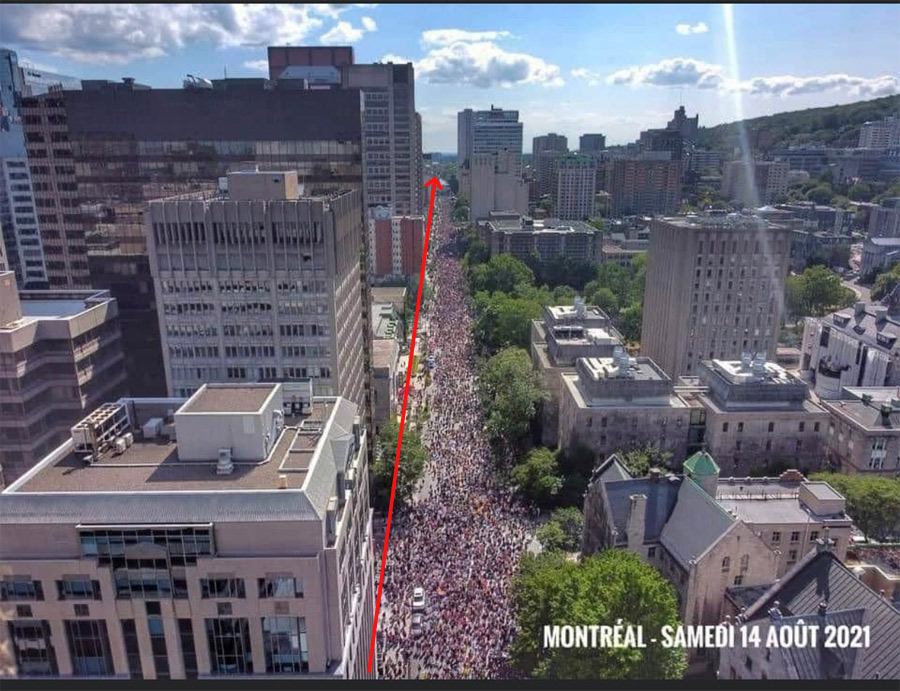 Fake News, Le Journal de Montréal. Hier en après-midi une ’imposante manifestation dans les rues de Montréal contre le passeport vaccinal au Québec.