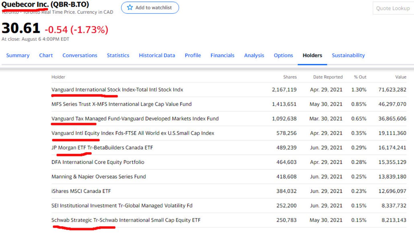 Vous, vous demandez pourquoi Quebecor pousse à l'extrême le narratif sur le Vaccin, arrêter de vous posez cette question, l'équation est simple et cette image des investisseurs donne l'explication.