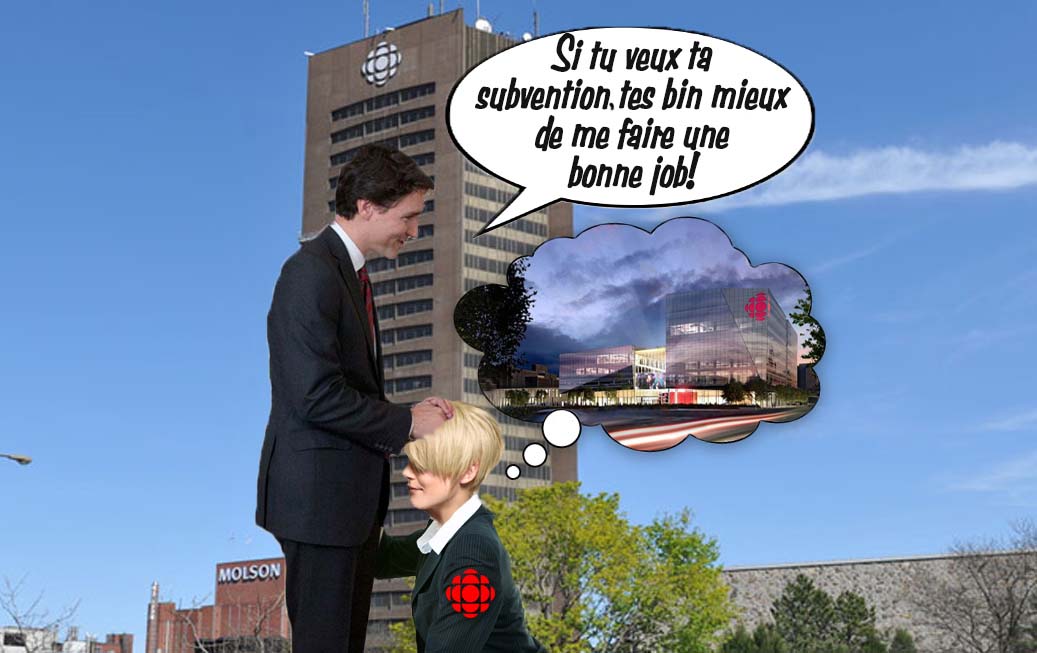Effet, rien n'est différent aujourd'hui, Radio-Canada continue à faire des pipes à Trudeau, dans un but bien précis, celui de voir la fin de la construction de La Maison mère de Radio-Canada. Qui a payé pour ça, vous croyez ?  Voici ce que représente Radio-Canada pour les Québécois.  Il doit l’avouer,  c'est choquant, mais assez représentatif.