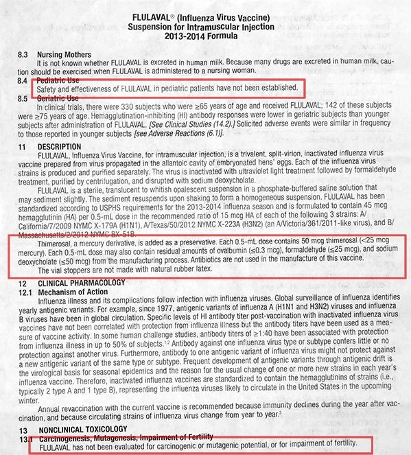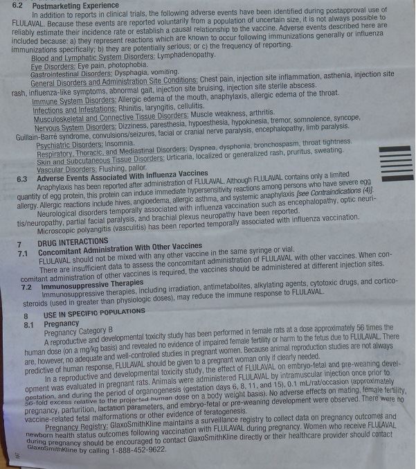 Une feuille d'insertion de vaccin contre la grippe (voir les photos ci-dessous) admet en fait :