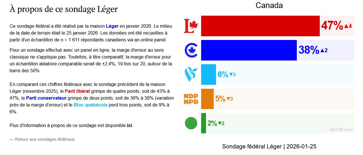 Attention aux fameux sondage léger, seulement 757 personnes ont votés pour les libéraux.