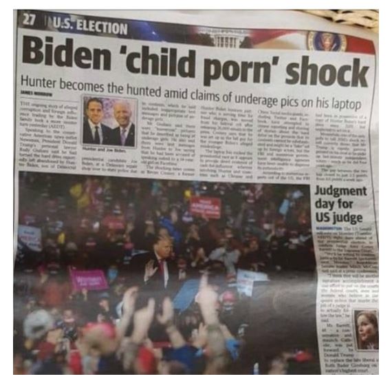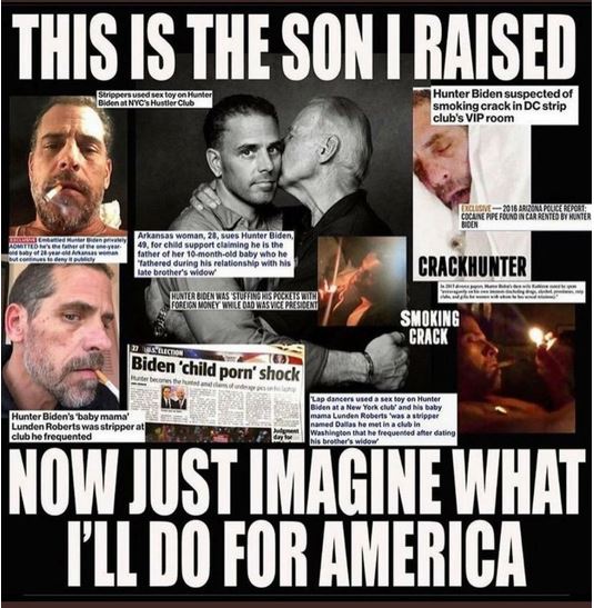 (La Presse, Radio-Canada, TVA, Journal de Montréal, Le Devoir etc ) parle de Hunter Biden, mais tous les textes des journaleux discréditent ceux qui s'attaque Hunter. Même que les journaleux en rajoutent une bonne couche en disant lors d'un texto avec son père Joe sur sa dépendance d'alcool et drogues «Cet échange de textos déchirants a été publié la semaine dernière par le New York Post dans le cadre d’une série d’articles cherchant à démontrer que le candidat démocrate à la présidence est corrompu et que son fils est un raté».